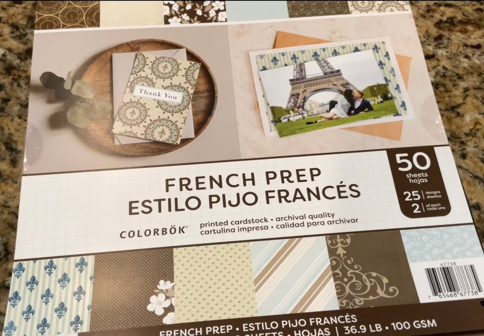 This DeSTASH box includes eight 12 x12 scrapbook paper pads, one 8.5x11 paper pads, stamps, stickers, EK Tools tag punch, etc. 15 lbs total weight