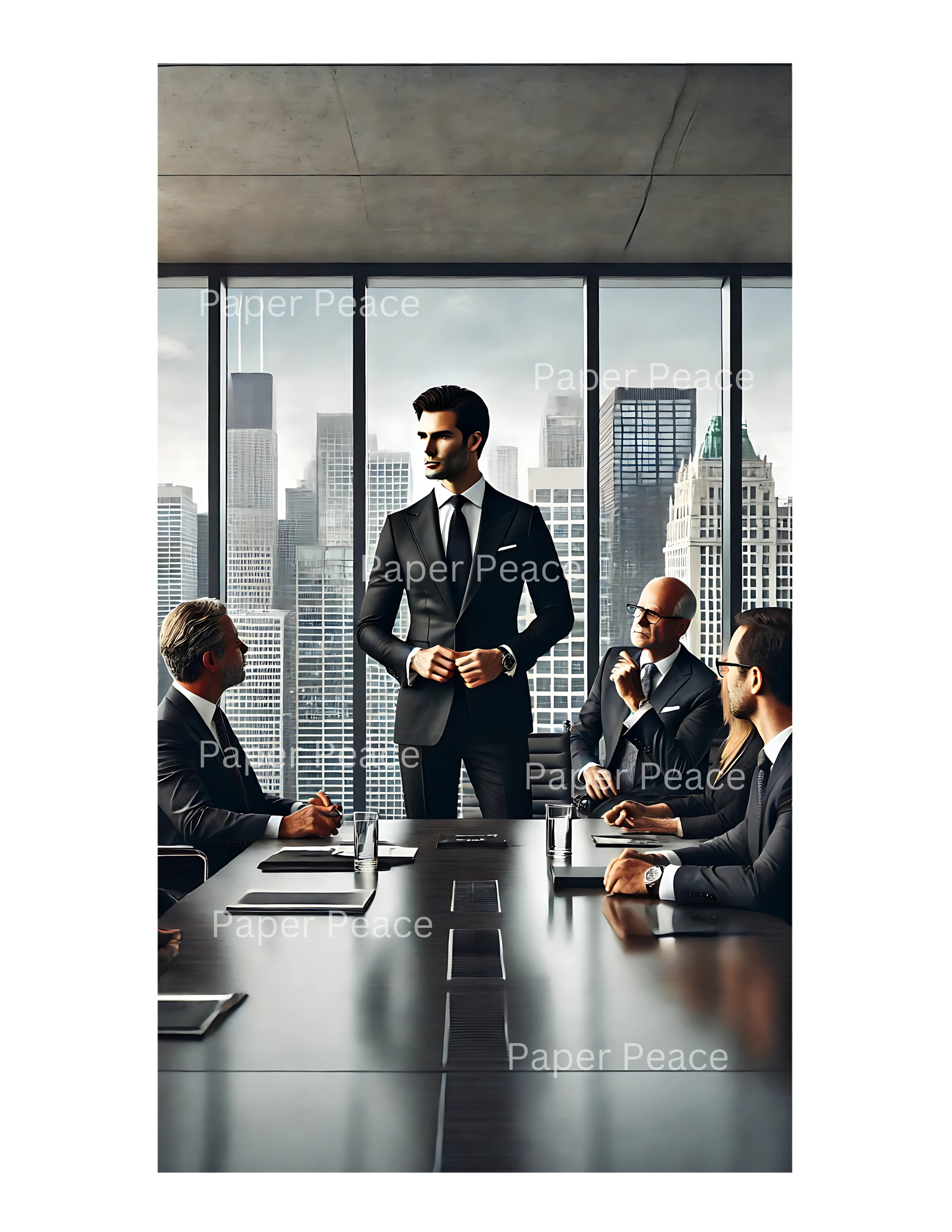 Handsome Caucasian Gentleman in Executive Board Room Overlooking New York Skyline