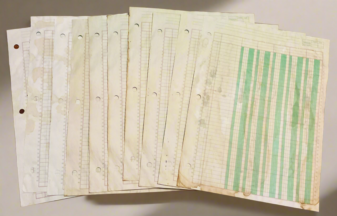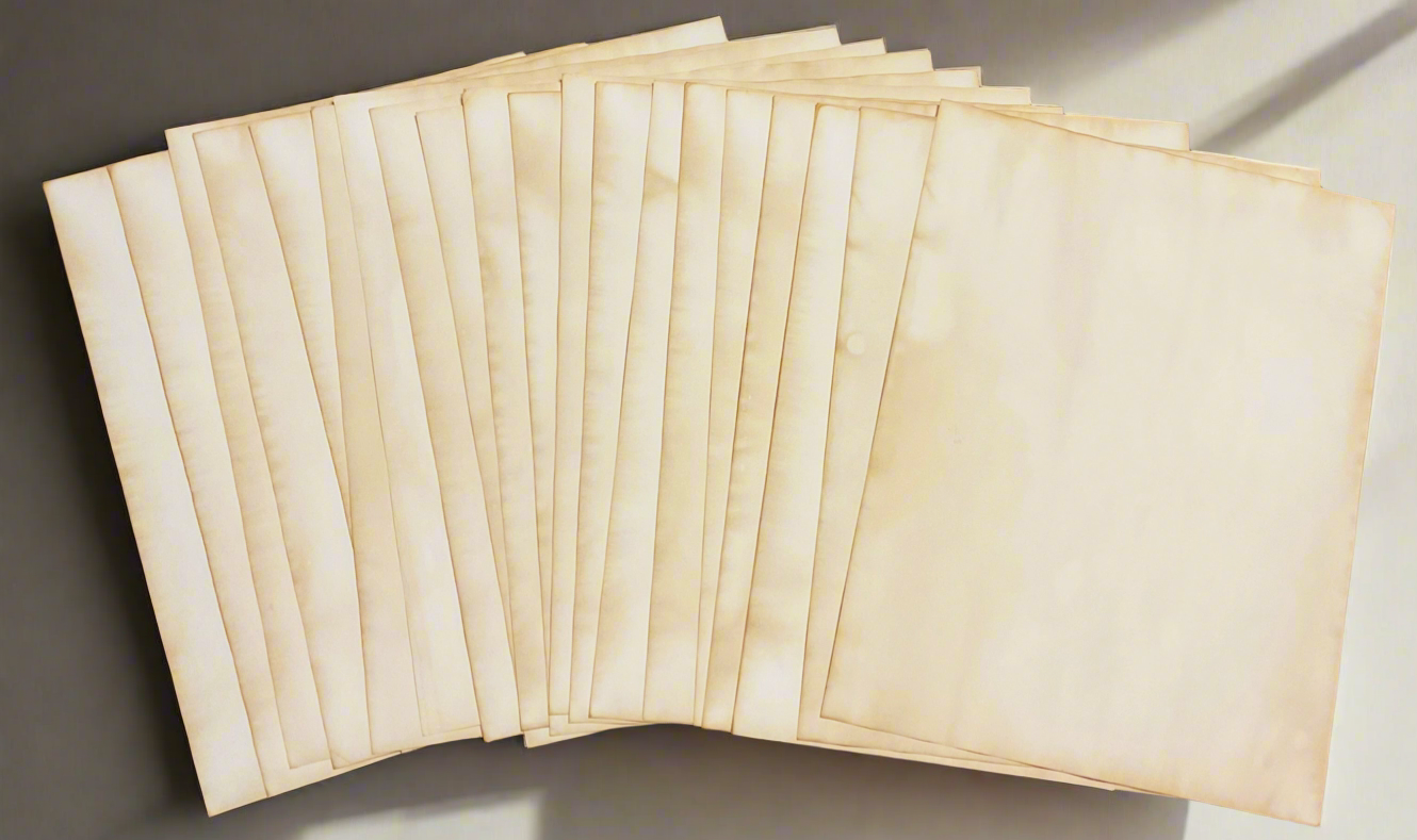 - 10 Coffee-stained ledger pages (authentic & aged)